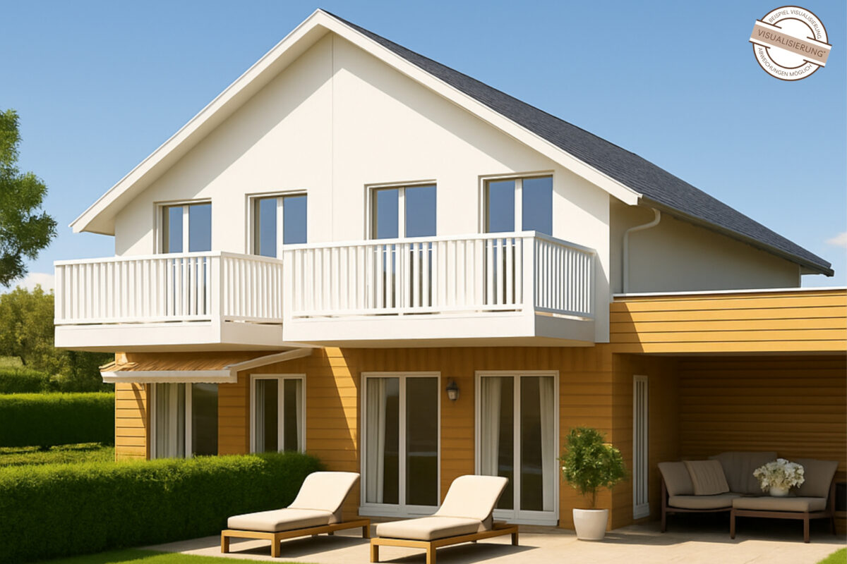 Alle gezeigten Abbildungen und Visualisierungen dienen ausschließlich der Veranschaulichung. Sie wurden teilweise mithilfe von KI erstellt und sind nicht maßstabsgetreu. Farben, Materialien, Ausstattungen und Details können vom späteren Endergebnis abweichen. Möblierungen, Dekorationen sowie dargestellte Ausstattungen können Sonderwünsche darstellen und sind – sofern nicht ausdrücklich anders angegeben – nicht im Kaufpreis enthalten bzw. nur gegen Aufpreis erhältlich. Änderungen und Irrtümer bleiben vorbehalten. Maßgeblich und verbindlich sind ausschließlich die Bau- und Leistungsbeschreibung sowie der notarielle Kaufvertrag.