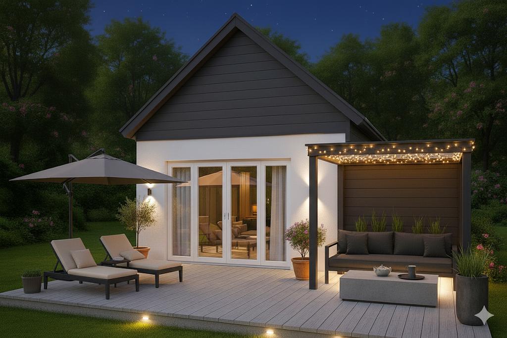 Terrasse und überdachter Freisitz als Erweiterung des Wohnraums