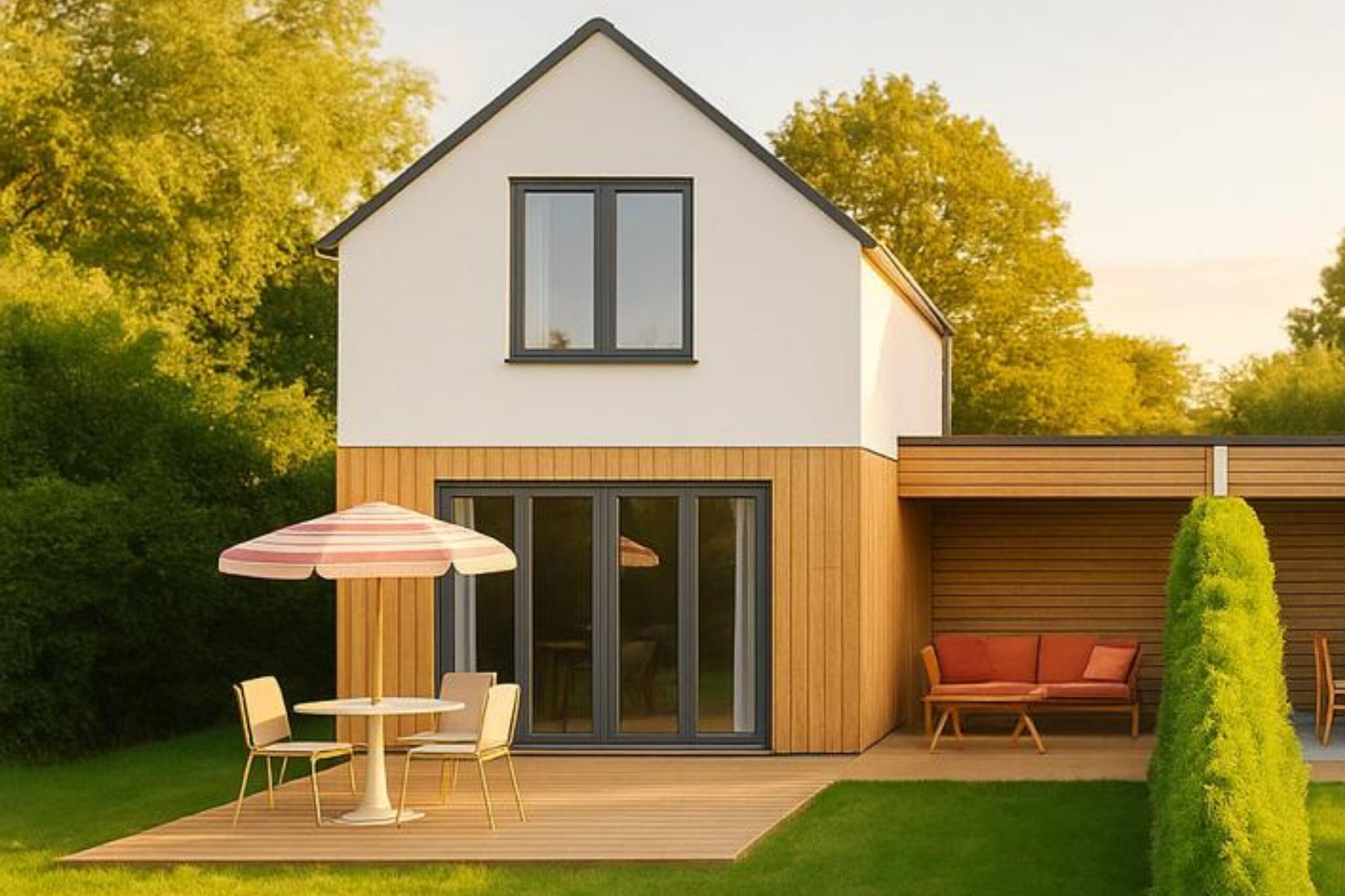 Dieses Haus zeigt, wie stilvolles Design und gemütliches Wohnen perfekt miteinander verschmelzen. Ein Rückzugsort zum Wohlfühlen – kompakt, modern und voller Charme.